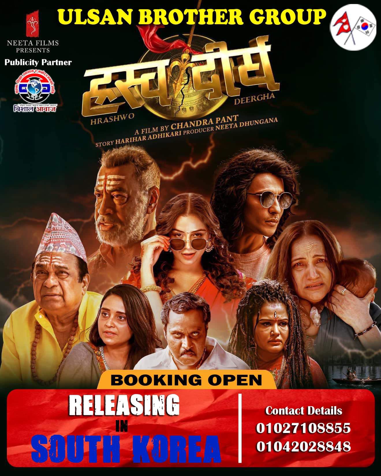 ‘स्टारकास्ट’कै कारण ठूलो ‘हाइप’ दिलाउन सफल फिल्म ‘ह्रस्व दीर्घ’ दक्षिण कोरियाको विभिन्न सहरहरूमा प्रदर्शन का लागि 01027108855/01042028848 मा सम्पर्क गर्न सक्नुहुने उल्सान ब्रदर ग्रुपले विशाल आवाजलाई बताएको छ।