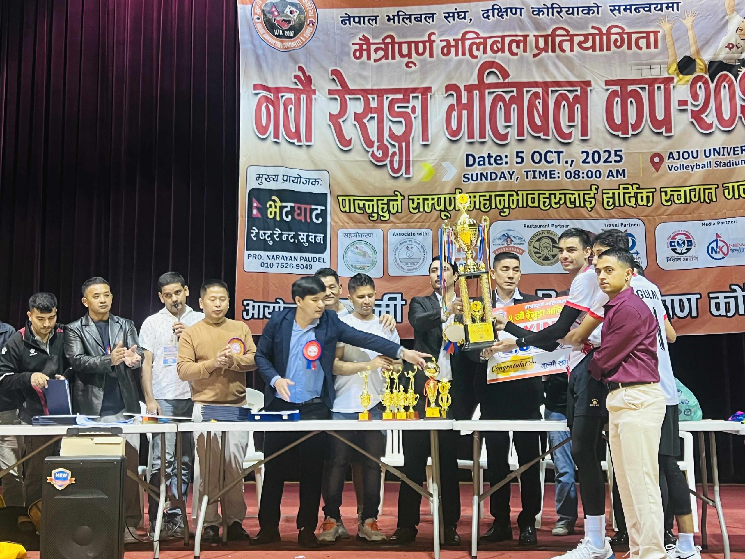 दक्षिण कोरियामा नेपाली समुदायबीच अत्यधिक लोकप्रिय बनिरहेको मैत्रीपूर्ण भलिवल प्रतियोगिता “रेसुङ्गा कप–२०२५” आइतबार, अक्टोबर ५ मा भव्य रूपमा सम्पन्न भएको छ। नेपाल भलिवल संघ, दक्षिण कोरियाको समन्वयमा गुल्मी सम्पर्क समिति दक्षिण कोरियाले आयोजना गरेको यो प्रतियोगिता “राष्ट्रको लागि खेलकुद, स्वास्थ्यका लागि खेलकुद, खेलले नै दिन्छ राष्ट्रलाई स्वाभिमान, राष्ट्रिय खेल भलिवल बचाउ हाम्रो अभियान” भन्ने मूल नाराका साथ सुवोनस्थित आजु युनिभर्सिटी (Ajou University) को भलिवल स्टेडियममा सम्पन्न भएको हो।