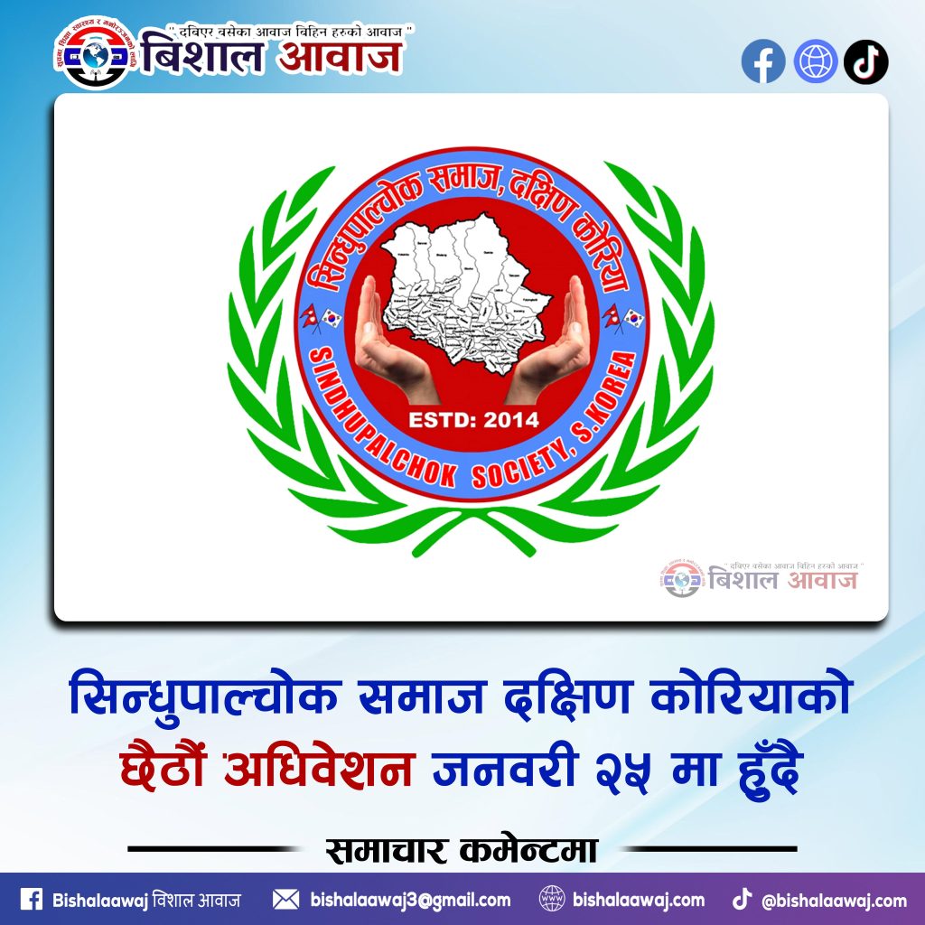 सिन्धुपाल्चोक समाज, दक्षिण कोरियाको छैठौ अधिवेशन जनवरी २५ तारिख आईतवारका दिन हुने भएको छ।