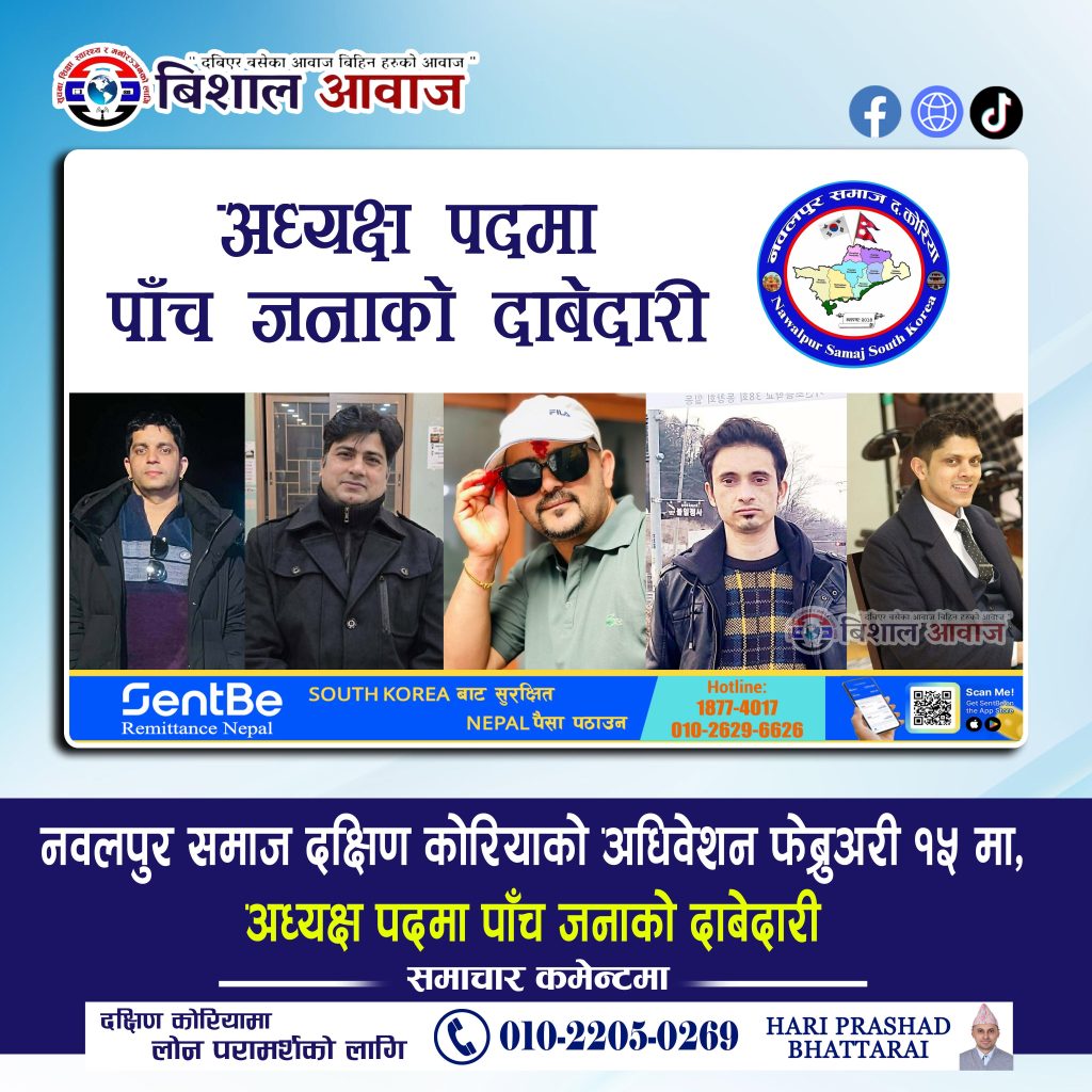 दक्षिण कोरियामा रहेका नवलपुरेलीहरूको साझा संस्था नवलपुर समाज दक्षिण कोरिया को आगामी अधिवेशन यही फेब्रुअरी १५ तारिखमा हुने भएको छ। अधिवेशनको तयारी तीव्र रूपमा अघि बढिरहेको आयोजक समितिले जनाएको छ।