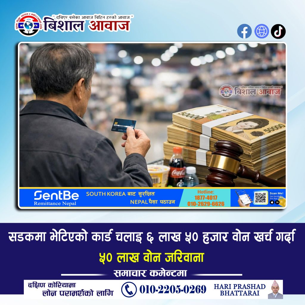सडकमा भेटिएको डेबिट कार्ड प्रयोग गरी करिब ६ लाख ५० हजार वोन खर्च गरेका ६० वर्ष नाघेका एक पुरुषलाई अदालतले ५० लाख वोन जरिवाना सजाय सुनाएको छ।