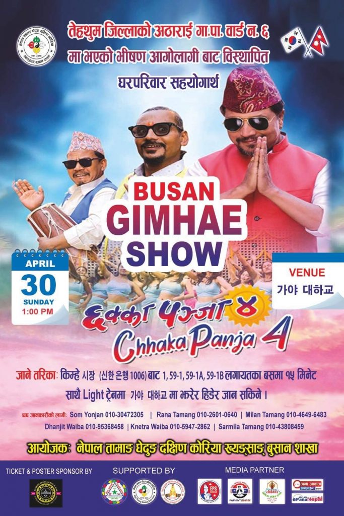 नेपाल तामाङ घेदुङ दक्षिण कोरिया ख्यङ्साङ् बुसान शाखाले यहि अप्रिल ३० मा कोरियाको बुसान किम्हे सहर स्थित गया युनिभर्सिटी हलमा नेपाली कथानक चलचित्र छक्का पन्जा ४ प्रदर्शन गर्ने भएको छ !