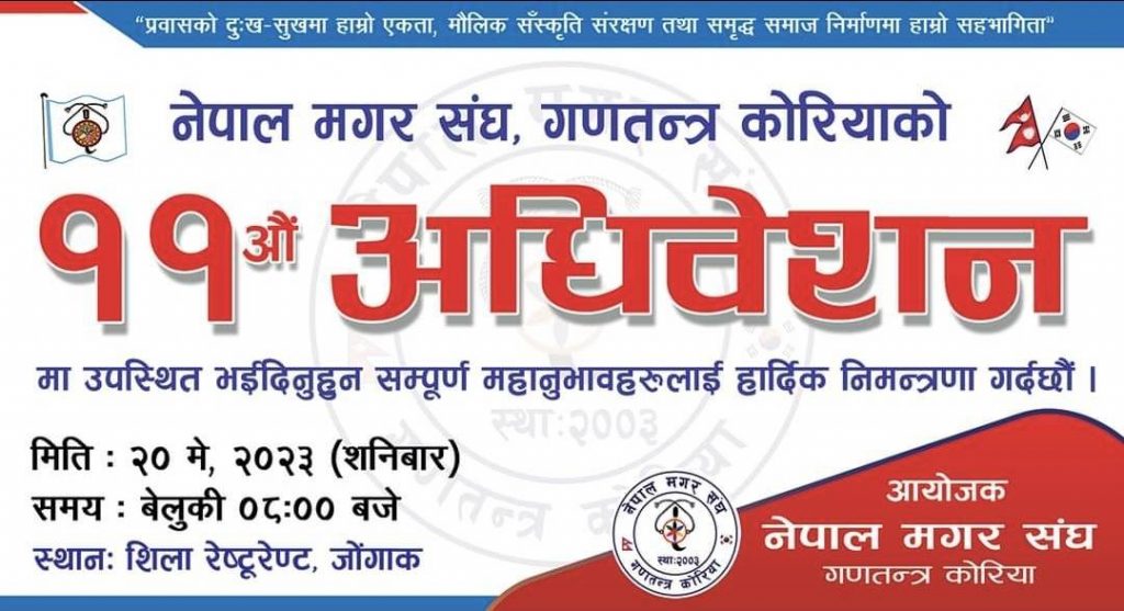 नेपाल मगर संघ द. कोरियाको एघारौं केन्द्रीय अधिवेशन मे २० मा हुने