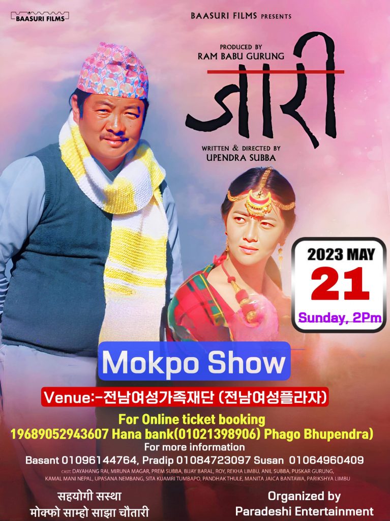 नेपालमा नेपाली नया वर्षको अवसर पारेर प्रदर्शन भएको चलचित्र जारी कोरियाको पनि विभिन्न सहरहरुमा सफलताका साथ भव्य प्रदर्शन भैसकेको चलचित्र हो जारि। सउल सोमा व्यवस्थापन केहि कमजोरी देखिएतापनि MOKPO SHOW मा त्यस्तो कमजोरी हुन नदिने आयोजकको दावी रहेको छ।