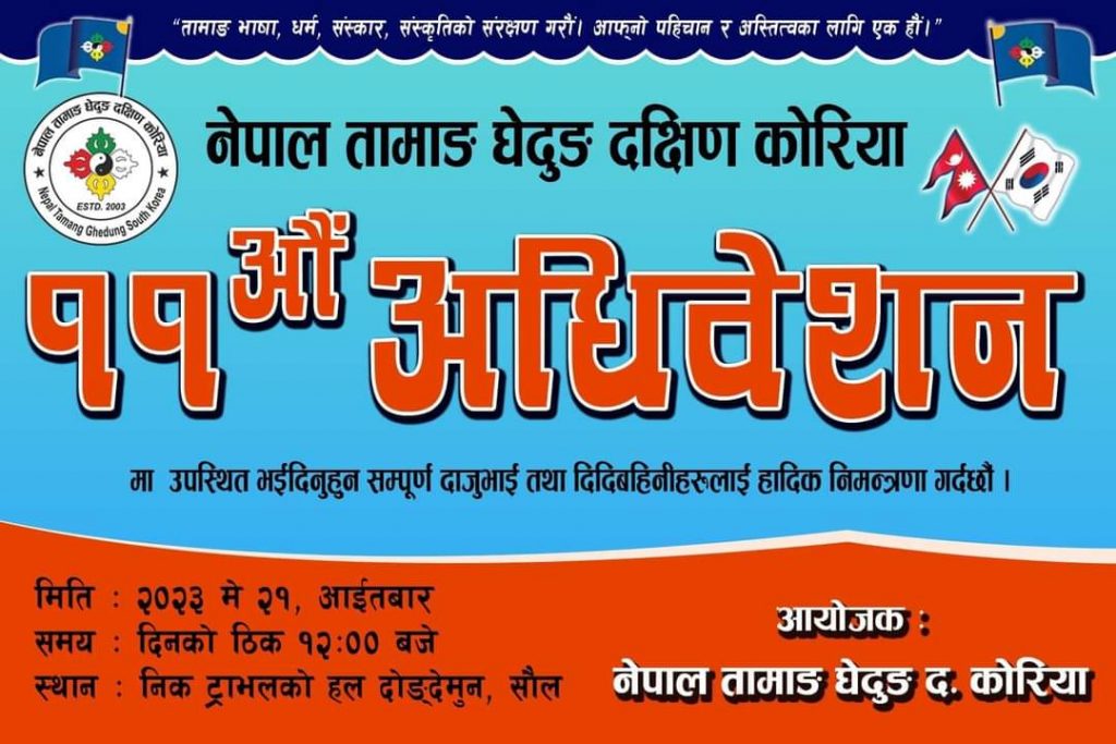 नेपाल तामाङ घेदुङ दक्षिण कोरियाको एघारौं केन्द्रीय अधिवेशन मे २१ मा हुने