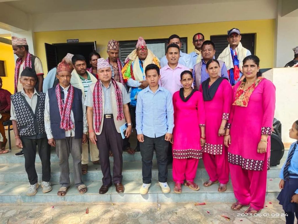 जलेश्वरी आधारभूत विद्यालयमा सेवा निवृत्त प्र.अ गुणनिधि लम्सालको बिदाइ तथा नव नियुक्त शिक्षकलाइ भव्य स्वागत कार्यक्रम सम्पन्न
