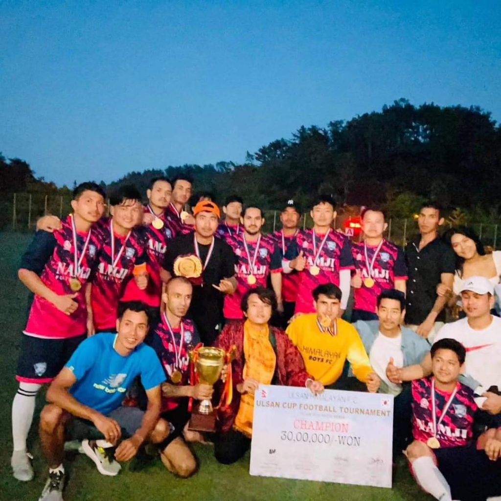 सम्वातदाता:बिश्व ब्यापी महामारी कोरोना कोभिड भाइरस रोगको प्रकोपबाट ग्रसित लामो समयको अन्तरालपछि उल्सान फुटबल क्लब र हिमालय फुटबल क्लबको संयूक्त रुपमा आयोजना गरिएको प्रथम उल्सान कप फुटबल प्रतियोगिताको उपाधि नाम्जी फुटबल क्लबले चुम्न सफल भएको छ l