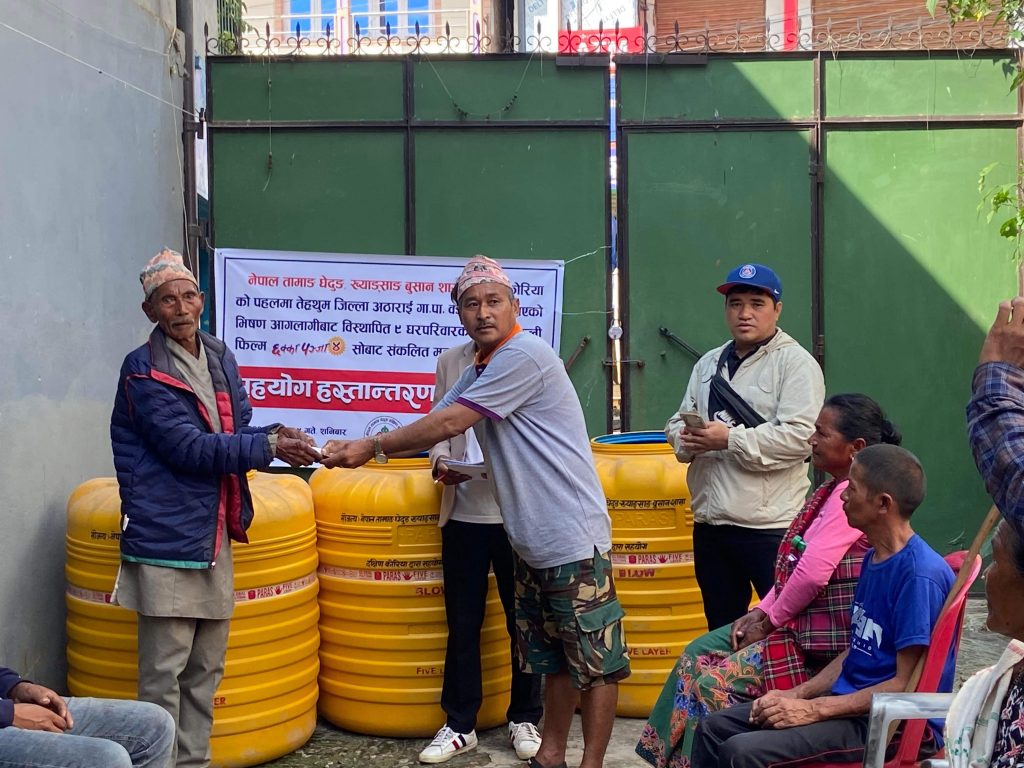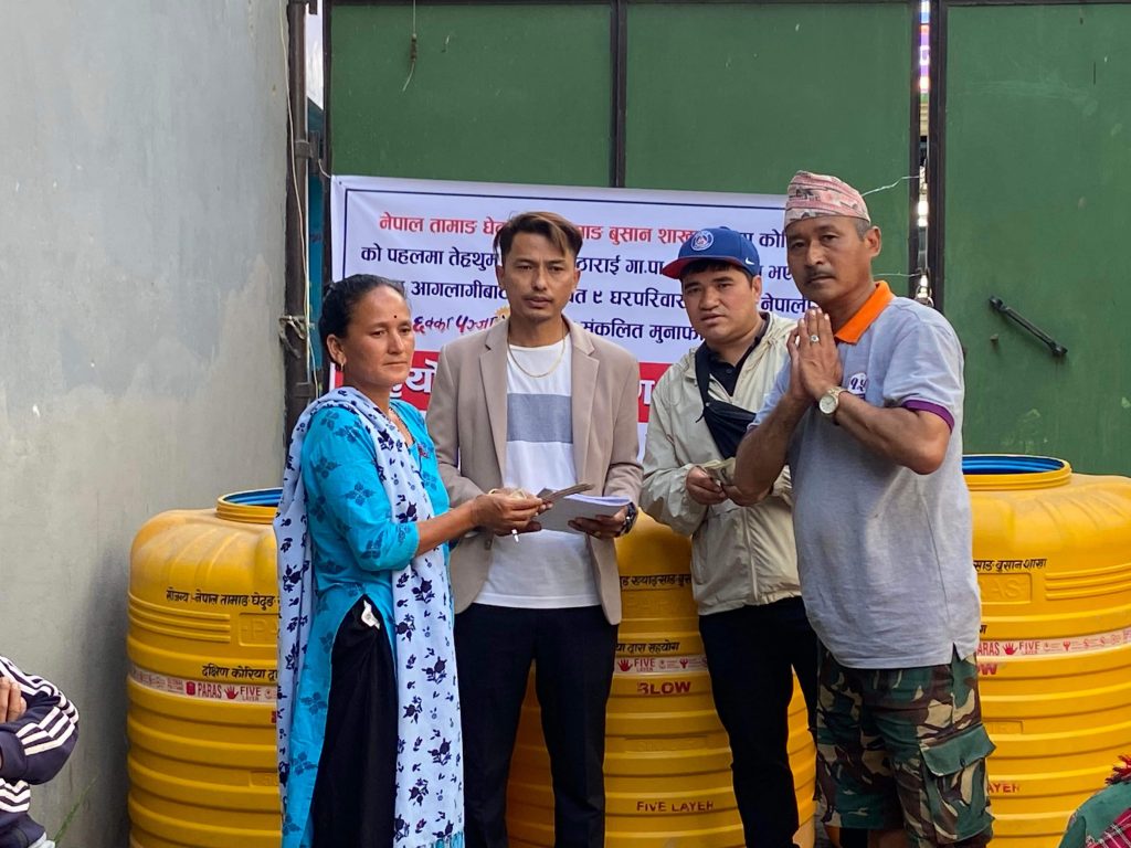 कार्यक्रमको कुल बचत ४६५७३१० वन मध्ये तिस लाख वन र रबिन बल तामाङको पहलमा सङ्कलित ५ लाख वन गरि ३५ लाख वन बराबरको नगद तथा जिन्सी तेह्रथुम जिल्लाको अठाराई गाउपालिका वार्ड न. ६ मा भएको भीषण आगोलागी बाट विस्थापित पिडित परिवारहरु लाई हस्तान्तरण गरिएको छ । बाकी १६५७३१० वन नाना आङा धिम (महिला सेल्टर) संचालनमा सदुपयोग गरिने तामाङ घेदुङ ख्यङ्साङ् शाखाले जनाएको छ ।