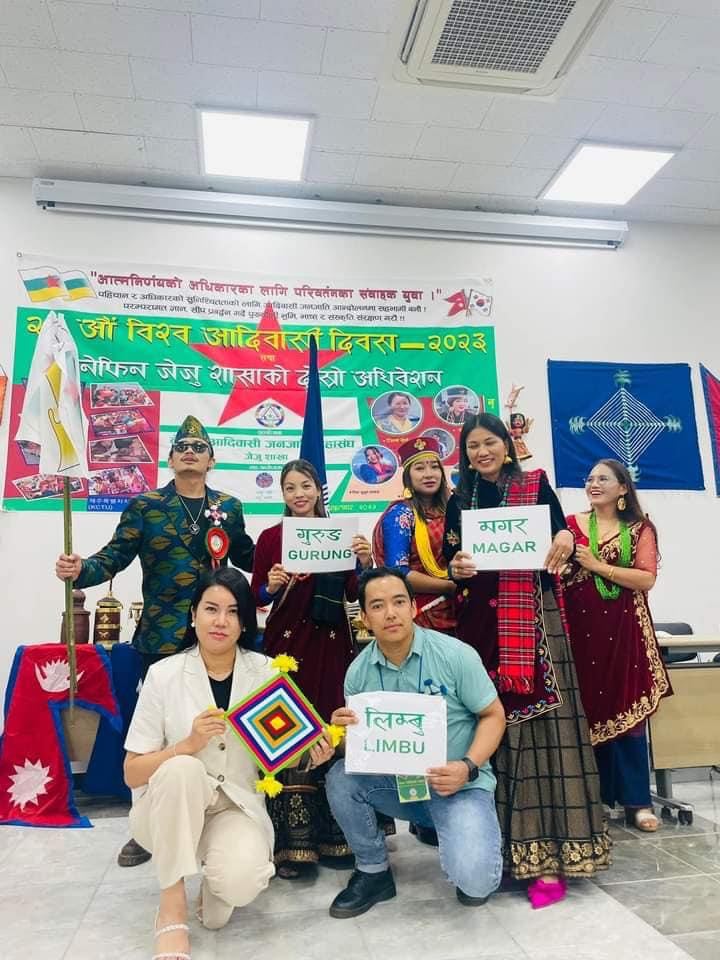विशाल श्रेष्ठ/ दक्षिण कोरिया: नेपाल आदिवासी जनजाति महासङ्घ दक्षिण कोरिया जेजु शाखाको दोश्रो अधिवेशन वाट अध्यक्षमा गजिन हाङस्रोङ निर्वाचित भएका छन्। जेजु प्रान्तको 제주특별자 치도 제주시 명신 1 길 11 (KCTU ) को हलमा सम्पन्न २९ औ विश्व आदिवासी दिवस २०२३ तथा नेफिन जेजु शाखाको अधिवेशन वाट गजिनको अध्यक्षतामा २३ सदस्यिय नया कार्यसमिति चयन गरिएको हो।
