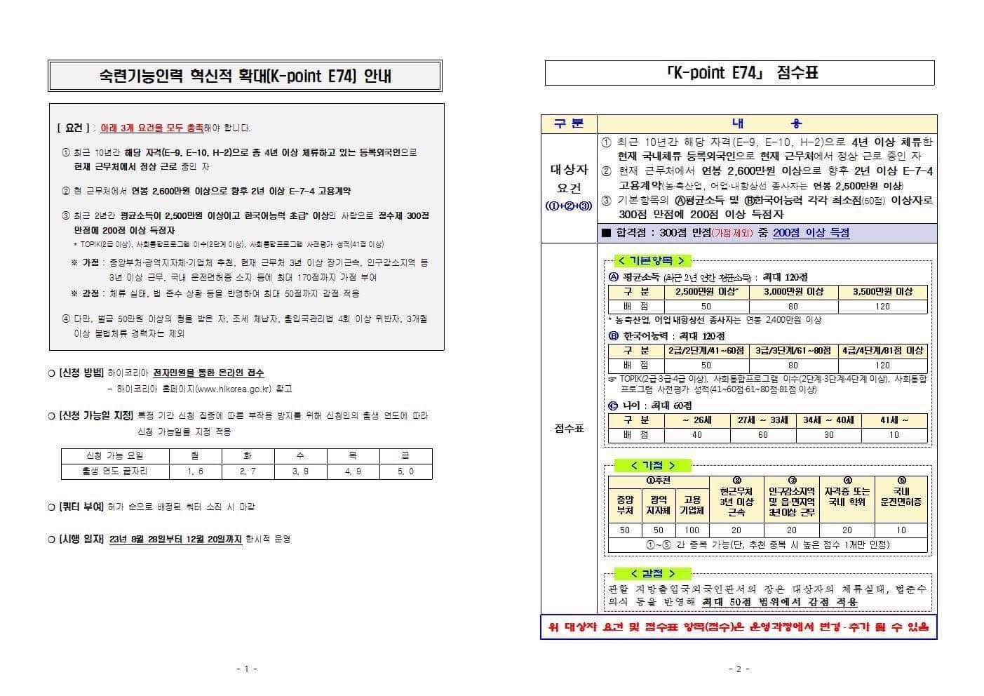 लामो समयसम्म कोरियामा बस्न सकिने भिसा भनेर चिनिएको E-7-4 को नयाँ अंक प्रणाली निर्धारण भएको छ ।