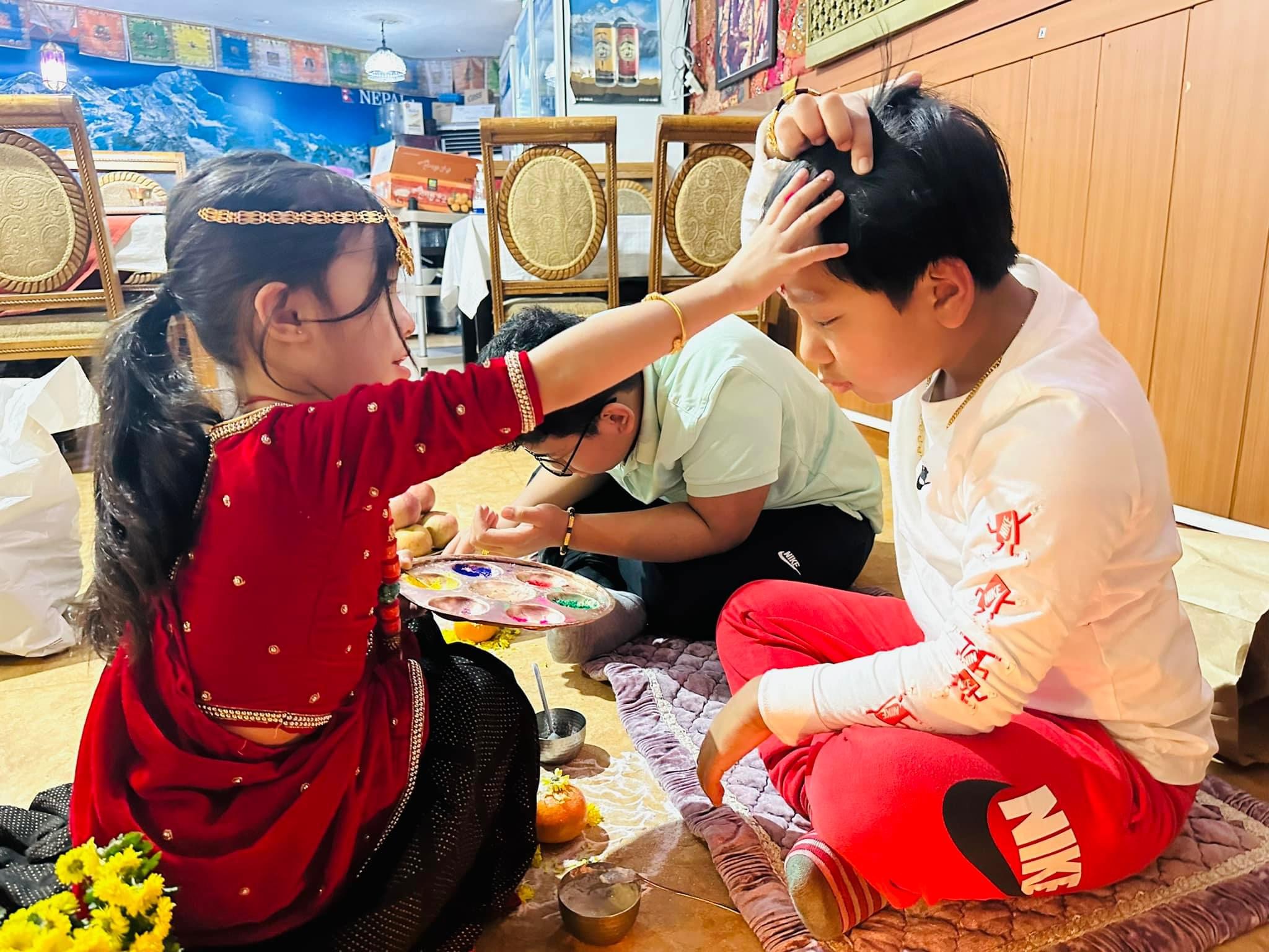 दिदीबहिनीले दाजुभाइलाई तेलको धाराले छेकेर परम्परा अनुसार सप्तरङ्गी वा पञ्चरङ्गी टीका, मखमली, सयपत्री र गोदावरीलगायतका फूलका माला लगाई दिएका छन् ।
