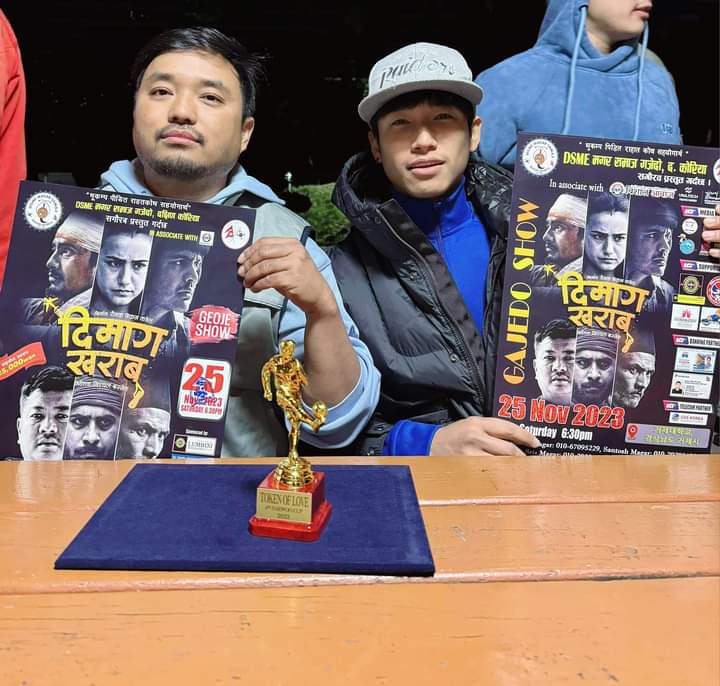 पश्चिम नेपालमा आएको भूकम्पमा परि धेरै धनजनको क्षति भएको कारणले त्यसमा सानो मलम पट्टि लगाउने उद्देश्यका साथ भूकम्प पिडित राहतकोष सहयोगार्थ DSME मगर समाज गजेदो,दक्षिण कोरियाद्बारा प्रर्दशन गर्न लागेको नेपाली कथानक चलचित्र ‘दिमाग खराब ‘हेरेर मनोरञ्जनका साथै हाम्रो यस सामाजिक कार्यमा सहभागी हुन गजेदोमा रहनु भएका सम्पूर्ण नेपाली दाजुभाई तथा दिदीबहिनीहरुमा आयोजकले हार्दिकअनुरोध गरेको छ ।
