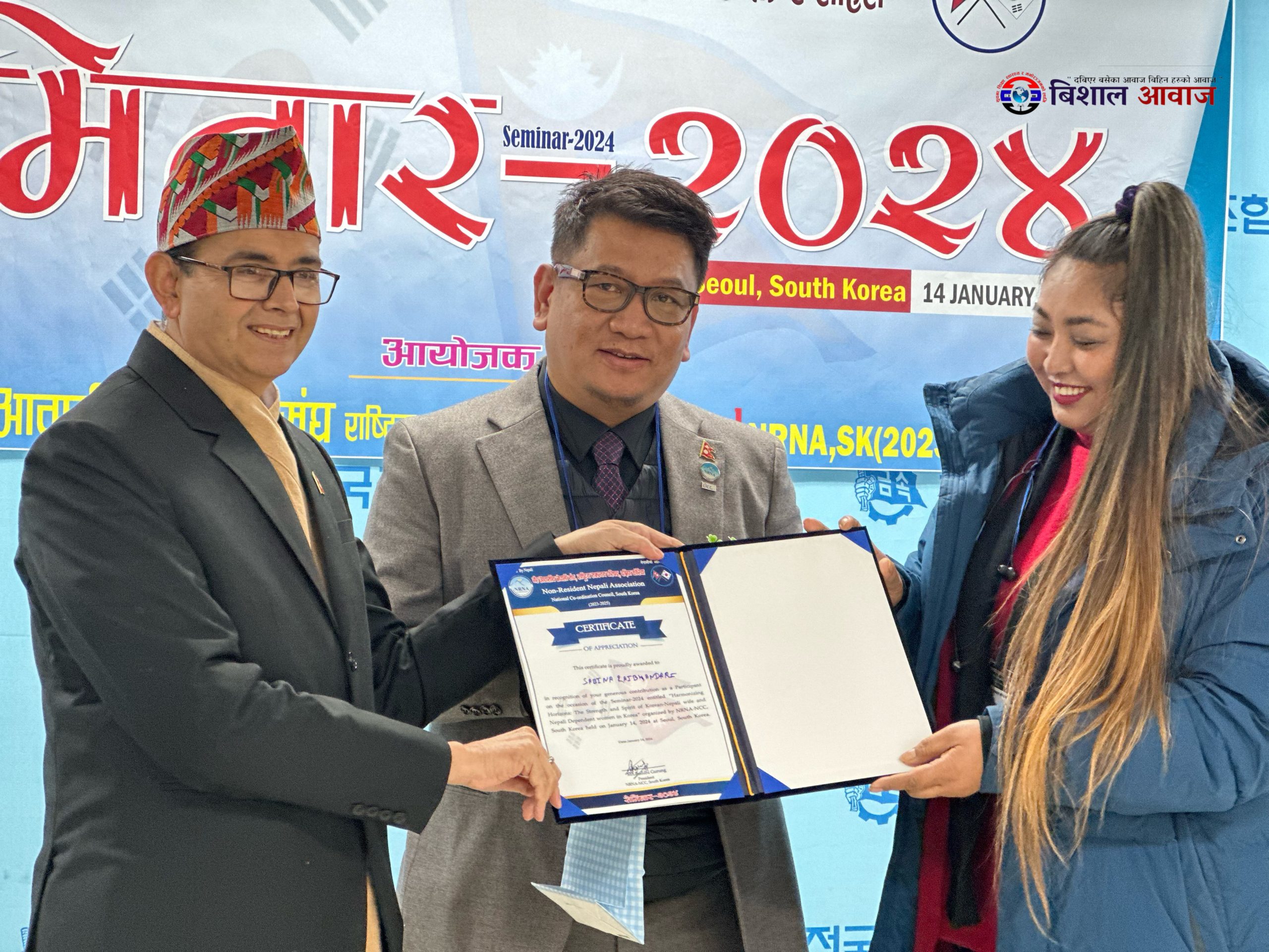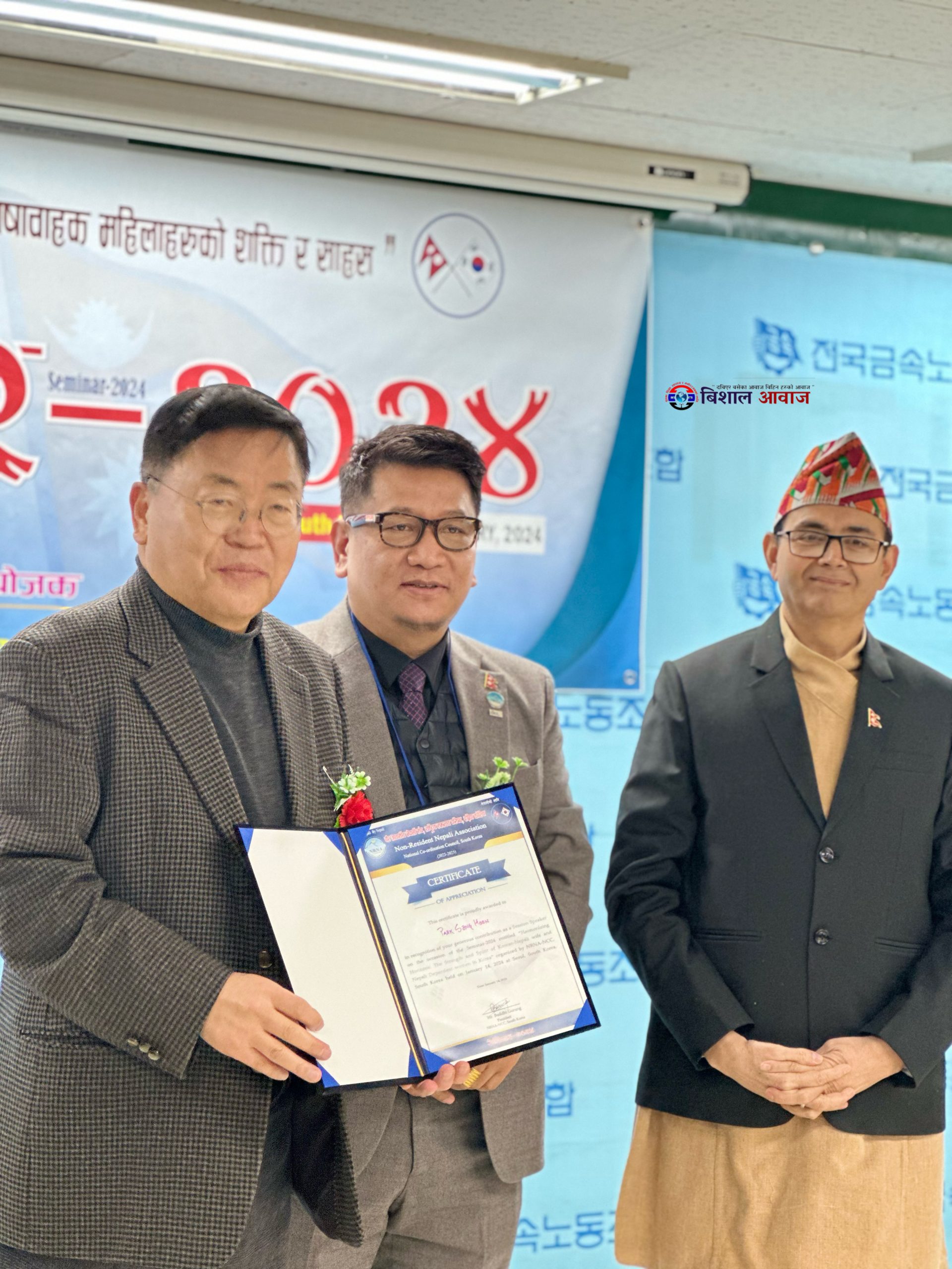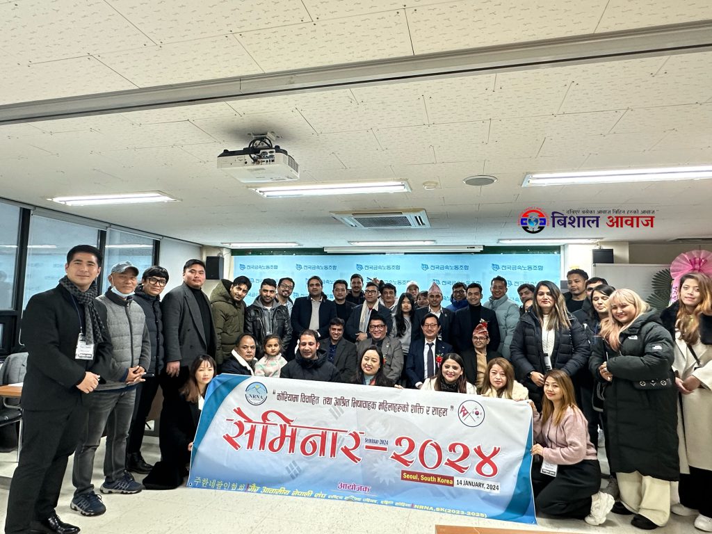 विशाल आवाज:गैर आवासीय नेपाली संघ, राष्ट्रिय समन्वय परिषद, दक्षिण कोरियाले कोरियमा कोरियनसंग बिवाह गरेर आउनु भएका महिला तथा आश्रित (Dependent) भिषामा रहनु भएका महिला दिदीबहिनीहरुलाई लक्षित गरि “कोरियामा विवाहित तथा आश्रित भिषावाहक महिलाहरुको शक्ति र साहस ” बिषयक सेमिनार -२०२४,सउलमा भव्यताका साथ सम्पन्न गरेको छ।