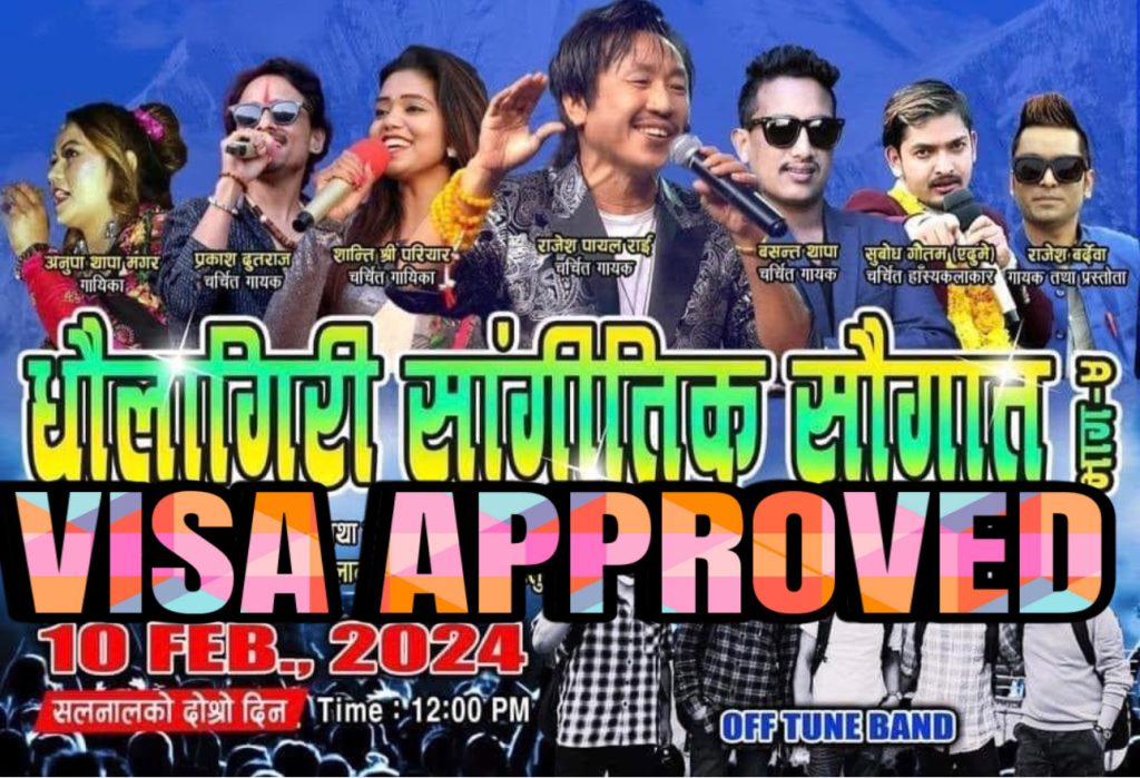 बिशाल आवाज :बागलुङ समाज दक्षिण कोरियाद्वारा सलनालको दोश्रो दिन हुने “धौलागिरी सांगितिक सौगात भाग -४” मा नेपाल बाट आउने अतिथी कलाकार हरु सबैको भिसा एप्रुभ भएको छ