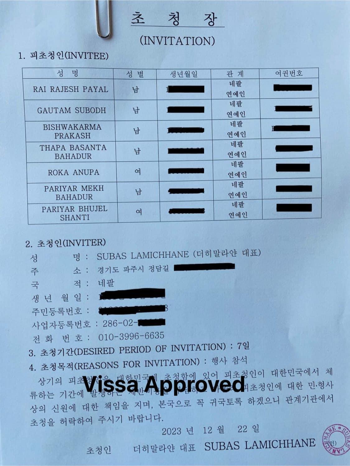 प्रवासी भूमिमा भैपरि आउने समस्याहरु समाधान गर्नका लागि आपतकालीन राहत कोष स्थापनार्थ सलनालको दोश्रो दिन आयोजना हुन लागेको एनसिसी दक्षिण कोरिया अन्तर्गत गण्डकी प्रदेशको समन्वयमा बागलुङ समाज दक्षिण कोरियाको “धौलागिरी सांगितिक सौगात भाग-४” मा नेपाल बाट आमन्त्रित चर्चीत कलाकार राजेश पायल, प्रकाश दुतराज, बसन्त थापा,शान्ति श्री परियार, चर्चित हास्यकलाकार सुबोध गौतम(एदुमे), गायिका अनुपा थापा मगर,गायक राजेश बर्देवा लगायतका सात जना सम्पूर्ण कलाकार हरुको भिसा समयमै लागेको हो। यस अघी कोरियामा हुने बिभिन्न कार्यक्रमहरुको पोस्टरमा कलाकार हरुको तस्बिर हाल्ने तर अन्तिममा कलाकारको भिसा समयमै नलागेर कार्यक्रमनै क्यान्सिल हुने लगायत कलाकारको उपस्थिती बिनानै कार्यक्रम सम्पन्न गरेको उदाहरण हरु प्रशस्त छन तर “धौलागिरी सांगितिक सौगात भाग -४” मा यस्तो हुन नदिन, कार्यक्रम सयोजक सुबाश लामिछाने सुरुवात अवस्था देखिनै सतर्क रहेका थिए।