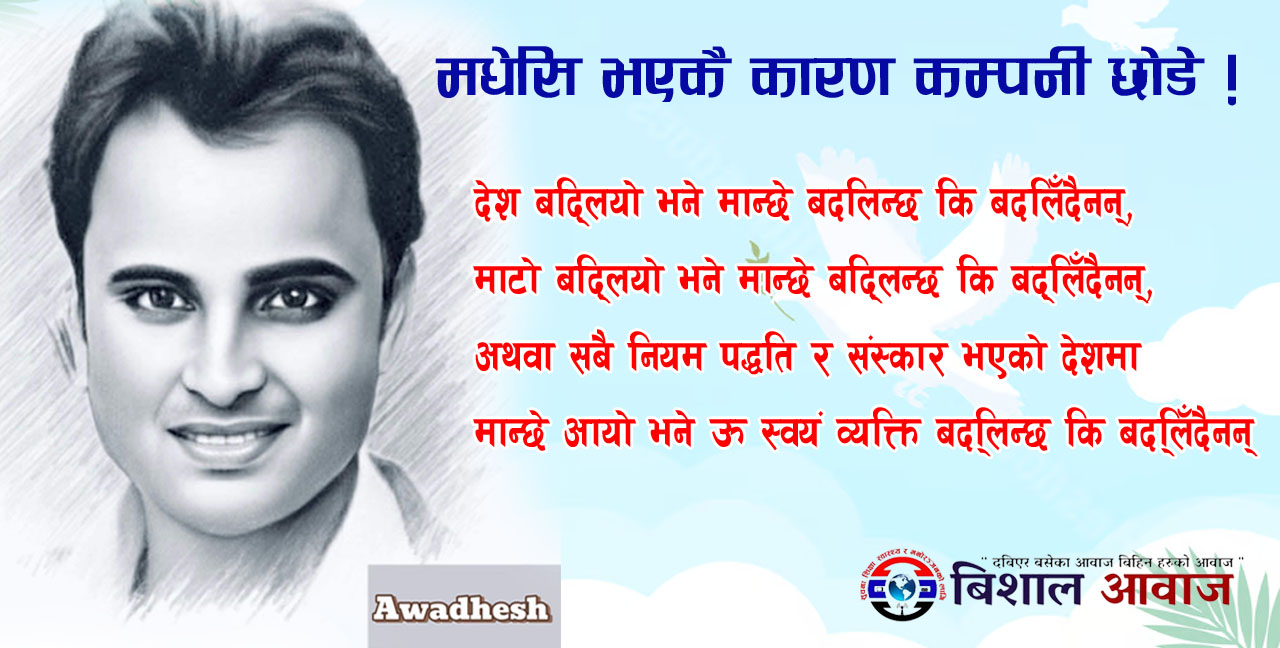 एकदिन उनको भेट म संग हुन्छ,म त्यहि दिन तिनको कार्यस्थल र कोठामा गएर बसेको थिए,जीवनमा पहिलो चोटि यति धारिलो र तेजिलो मान्छे देखेको थिए,जसको मानसपटलमा आट र साहस बाहेक केही पनि छैन,उसलाई अरुले के भन्छ भन्ने कुरामा कुनै पश्चाताप नै छैन,बस आफना कुरा निर्धक्क संग बोल्छ ति हुन् अवदेश राज चौरासिय !!
