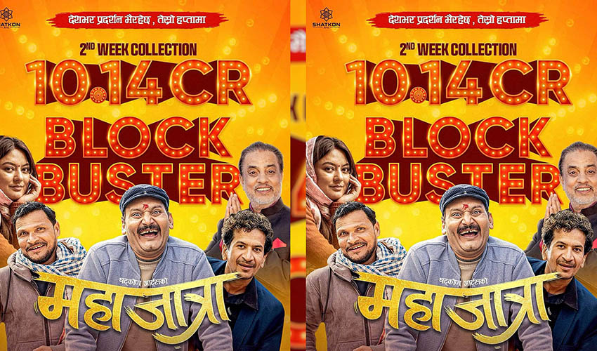 फिल्म । ‘जात्रा’ र ‘जात्रै जात्रा’ पछि षट्कोण आर्ट्सले निर्माण गरेको तेस्रो भाग ‘महाजात्रा’ प्रदर्शनको तेस्रो सातामा प्रवेश गरेको छ । देशभरका एकसय भन्दा बढी हलमा प्रदर्शनरत फिल्मले दुई सातामा दश करोड पन्ध्र लाख ग्रस कलेक्सन गरेको छ । पहिलोसाता ६ करोड २४ लाख ग्रस कलेक्सन गरेको फिल्मले पछिल्लो साता तीन करोड नब्बे लाख ग्रस कलेक्सन गरेको हो ।